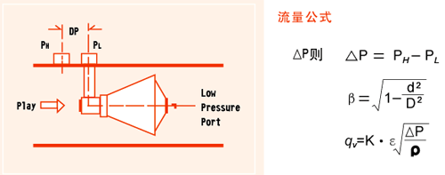 FM61 系列V錐流量計(V-cone flowmeter)是我公司在20世紀80年代開始研發的一種差壓流量計,它的開發成功是差壓式流量測量的質的飛躍。它利用V錐體在流場中產生的節流效應,通過檢測上下游壓差來測量流量。與普通節流件相比,它改變了節流布局,從中心孔節流改為環狀節流。實踐使用證明,V錐流量計與其他流量儀表相比,具有長期精度高、穩定性好,受安裝條件局限小、耐磨損、測量范圍寬、壓損小、適合贓污介質等優點。而且V錐體本身作為流場的整流器而成為一種具有獨特性能的優異的新型流量計。由V錐傳感器和差壓變送器組合而成的V錐流量計,可精確測量寬雷諾數(8×103≤Re≤5×107 )范圍內各種介質的流量。 FM61型V錐流量計主要技術參數 ·精度等級:0.5級(差壓流量變送器精度應高于0.2級,含0.2級), (β:0.45~0.85,當β<0.55,量 程比4∶1時,精度等級:≤0.30) ·重復性:0.1% ·工作壓力:0~40MPa(有多個壓力等級可供選擇) ·工作溫度:-40~850°C ·環境溫度:-40~65°C、 ·安裝直管段要求:前0-3D直管道,后0-1D直管段 ·量程比寬:通常為10∶1,選擇合適的參數可達到50∶1 ·壓損小:同樣的β值,壓損是孔板1/3~1/5 ·口徑從DN25~DN2000 FM61型V錐流量計的技術特點: 1、安裝要求低:前0~3D直管道,后0~1D直管段; 2、量程比寬:通常為10∶1,選擇合適的參數最高可做到50∶1; 3、壓損小:同樣的β值,壓損是孔板1/3~1/5; 4、耐磨損:流線型錐形體節流后,在錐形體表面產生真空層效應,使得錐形體不易磨損; 5、不堵塞,不粘附:錐形徹底吹掃式設計避免了流體中的殘渣、凝結物或顆粒的滯留; 6、長期穩定性好:β值可長期不變,并保證長期精確測量; 7、精度高:0.5級; 8、重復性好:優于0.1%; 9、信號穩定:"信號波動"是孔板的1/10; 10、β值范圍寬:V錐流量傳感器獨特的幾何形狀允許有廣泛的β值范圍; 11、口徑范圍寬:DN25~DN2000; 12、可測高溫、高壓介質:工作溫度最高850℃, 最大壓力40MPa; 13、可測臟污介質(焦爐煤氣、高爐煤氣、原料油、渣油等); 14、可測氣液兩相介質(濕氣、冷凝水等); V錐流量計是由V錐傳感器和差壓變送器組合而成的一種差壓式流量計,可精確測量寬雷諾數(8×103≤Re≤5×107)范圍內各種介質的流量。 其測量理論是:由于實際流體都具有粘性,不是理想流體,當其在管道中流動時,在充分發展管內流動的前提下,具有層流和紊流兩種流動狀態。根據連續流動的流體能量守恒原理和伯努力方程:對于以層流狀態流動的流體,其流速分布是以管道中心線為對稱的一個拋物面,流體通過一定管道的壓力降與流量成正比;對于紊流狀態流動的流體,其流速分布是以管道中心線為對稱的一個指數曲面,流體通過一定管道的壓力降與流量的平方成正比。 V錐傳感器是在測量管中安裝與管道中心線同軸的V錐體。該傳感器的測量管和V錐體是經過設計、精密加工的。流體在測量管內流經V錐體時,在V錐體前重新形成流態局部收縮,流速增大,靜壓下降,在V錐體前后產生壓差△P。在上游管壁(流體收縮前)處測得高壓(靜壓)PH,在V錐體朝下游端面的中心軸處開取壓口取得低壓PL(靜壓),如下圖所示: |